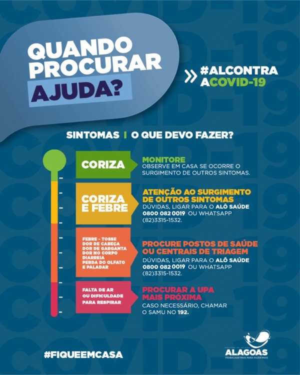 Inicialmente, as pessoas podem se consultar por telefone ou WhatsApp para evitar uma ida desnecessária à unidade de saúde, onde estariam mais expostas ao vírus: “Pessoas que estiverem com sintomas mais leves devem, inicialmente, optar pelo Alô Saúde, ligando para o 0800 082 1900, ou pelo Zap da Saúde, no número (82) 3315-1532 e serão orientadas por um médico. Caso precisem ir a alguma unidade de atendimento, essa deve ser uma Unidade Básica de Saúde (postos de saúde) ou as centrais de triagem, caso estejam sentindo qualquer sintoma que não seja falta de ar”, informa Marcos Ramalho.