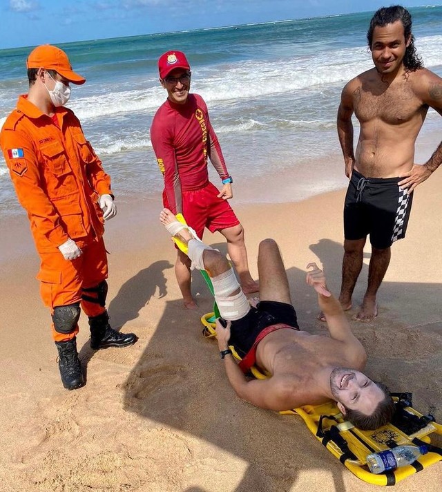 O parlamentar foi socorrido por uma equipe do Corpo de Bombeiros, que prestou os primeiros socorros ainda na areia da praia. Ele disse que deslocou o joelho e que um médico colocou de volta no lugar.